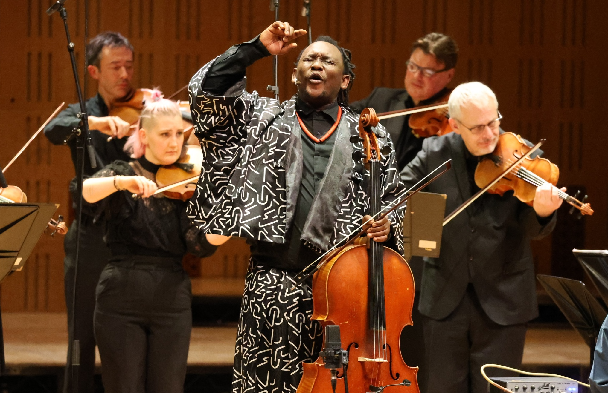 You see these types of performers only once in a long while. During his first song with the Irish Chamber Orchestra on Thursday night (5 February), Abel Selaocoe commanded the packed audience to stand up – ‘On your feet’ – and they obeyed, at the National Concert Hall of all places, without a moment’s hesitation. Primarily a cellist, but one whose practice incorporates singing, improvising, composition and movement, Selaocoe brings almost an excess of life and charisma, and his character evidently inspires a passionate following. The energy in the venue was high before he’d even played a note, and Selaocoe, with support from Alan Keary (bass guitar) and Bernhard Schimpelsberger (percussion), controlled and directed that energy like a conductor.