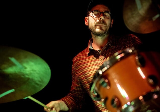 The combination of vibraphone, sustained strings and a slow moving bass line immediately gave the second movement an unmistakable film noir tinge, but this was relatively short-lived as Jacobson headed back to the kit for an extended cadenza that made much of the contrasting timbres between the bongos and the drum kit.